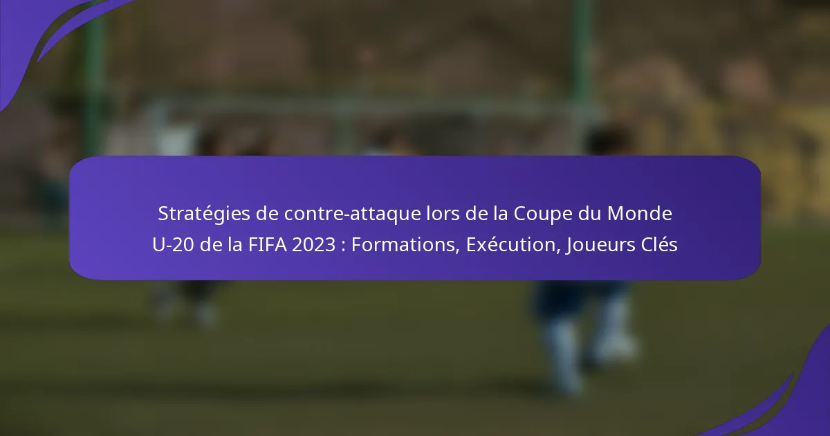 Les stratégies de contre-attaque lors de la Coupe du Monde U-20 de la FIFA 2023 mettent l’accent sur des transitions rapides de la défense à l’attaque, permettant aux équipes d’exploiter les faiblesses de leurs adversaires. En utilisant des formations telles que 4-3-3 et 3-5-2, les équipes peuvent maximiser leur potentiel offensif tout en assurant une stabilité défensive. Les joueurs clés jouent un rôle crucial dans l’exécution de ces stratégies grâce à des mouvements rapides, des passes précises et un positionnement stratégique.
