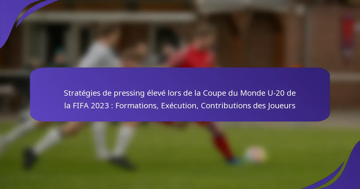 Les stratégies de pressing haut sont devenues une caractéristique déterminante du football moderne, particulièrement évidente lors de la Coupe du Monde U-20 de la FIFA 2023. Les équipes utilisent des formations spécifiques pour exercer une pression intense sur leurs adversaires, visant à récupérer rapidement la possession et à perturber leur jeu de construction. Cette approche tactique améliore non seulement la solidité défensive, mais crée également des opportunités de marquer immédiates grâce à des mouvements et un positionnement coordonnés des joueurs.