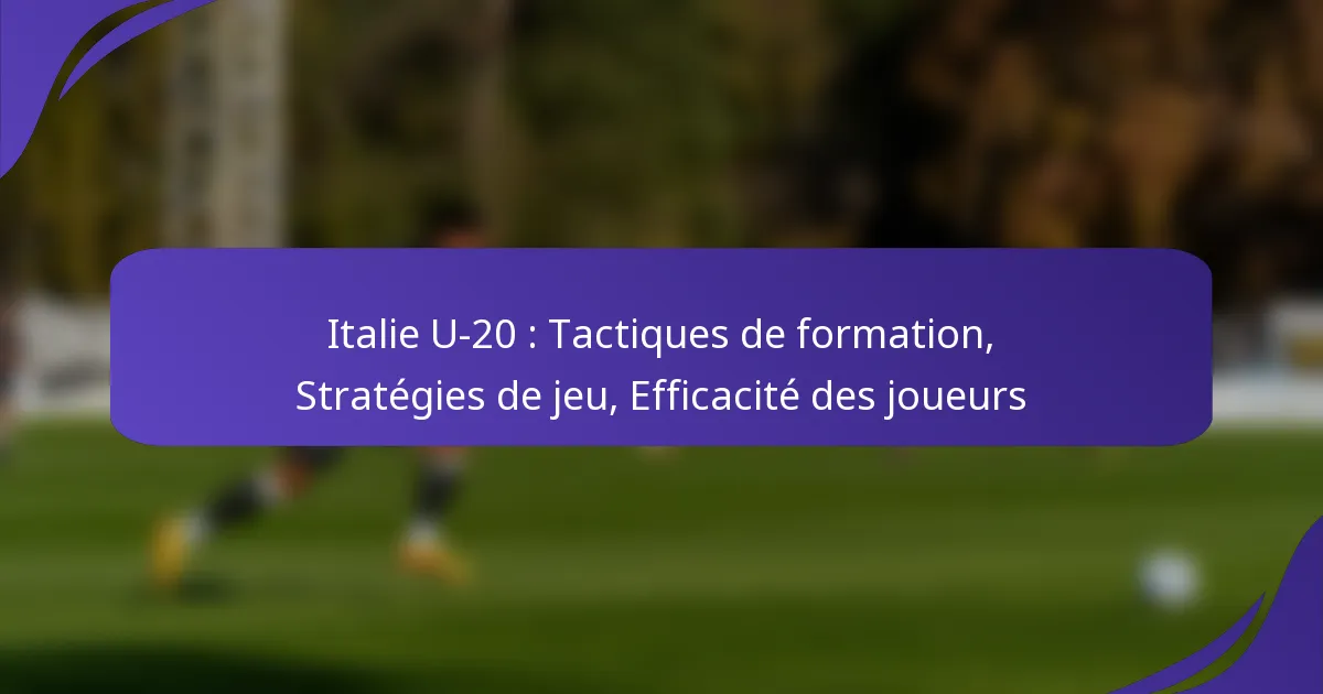 L’équipe U-20 d’Italie adopte une approche dynamique du football grâce à ses diverses tactiques de formation, utilisant principalement les systèmes 4-3-3 et 3-5-2. Ces formations améliorent non seulement la flexibilité tactique, mais soutiennent également un équilibre entre la force défensive et la créativité offensive. En mettant en œuvre un jeu structuré et des coups de pied arrêtés efficaces, l’équipe adapte ses stratégies de jeu pour optimiser l’efficacité des joueurs et répondre aux différentes situations de match.