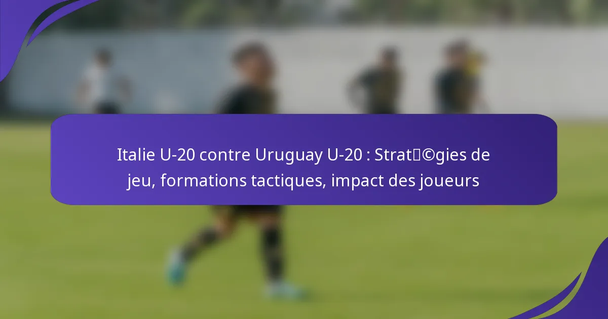 Le match entre l’Italie U-20 et l’Uruguay U-20 met en lumière des stratégies de jeu contrastées qui soulignent leurs philosophies tactiques uniques. L’approche dynamique d’attaque de l’Italie, utilisant généralement une formation 4-3-3, contraste avec l’accent mis par l’Uruguay sur une défense solide à travers un schéma 4-2-3-1. Les performances individuelles des joueurs sont cruciales, car leurs compétences et leur prise de décision peuvent influencer de manière significative l’issue et le momentum du match.