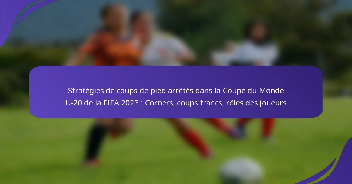 Les stratégies de coups de pied arrêtés lors de la Coupe du Monde U-20 de la FIFA 2023 sont cruciales pour créer des occasions de but et influencer les résultats des matchs. Les équipes emploient diverses tactiques pour les corners et les coups francs, en se concentrant sur les rôles des joueurs et les formations pour maximiser leur efficacité.