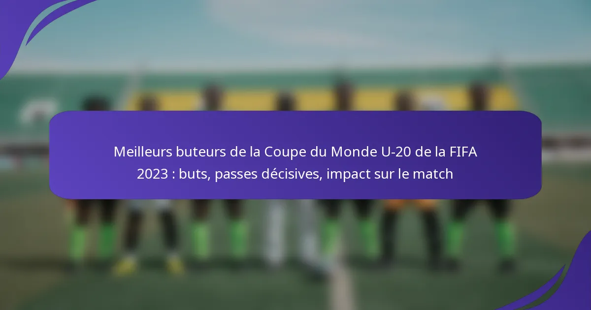 Les meilleurs buteurs de la Coupe du Monde U-20 de la FIFA 2023 ont significativement influencé leurs matchs grâce à des buts clés, des passes décisives et des performances globales. Leurs contributions ont non seulement renforcé le moral de l’équipe, mais ont également façonné les stratégies tactiques, menant à des victoires décisives.